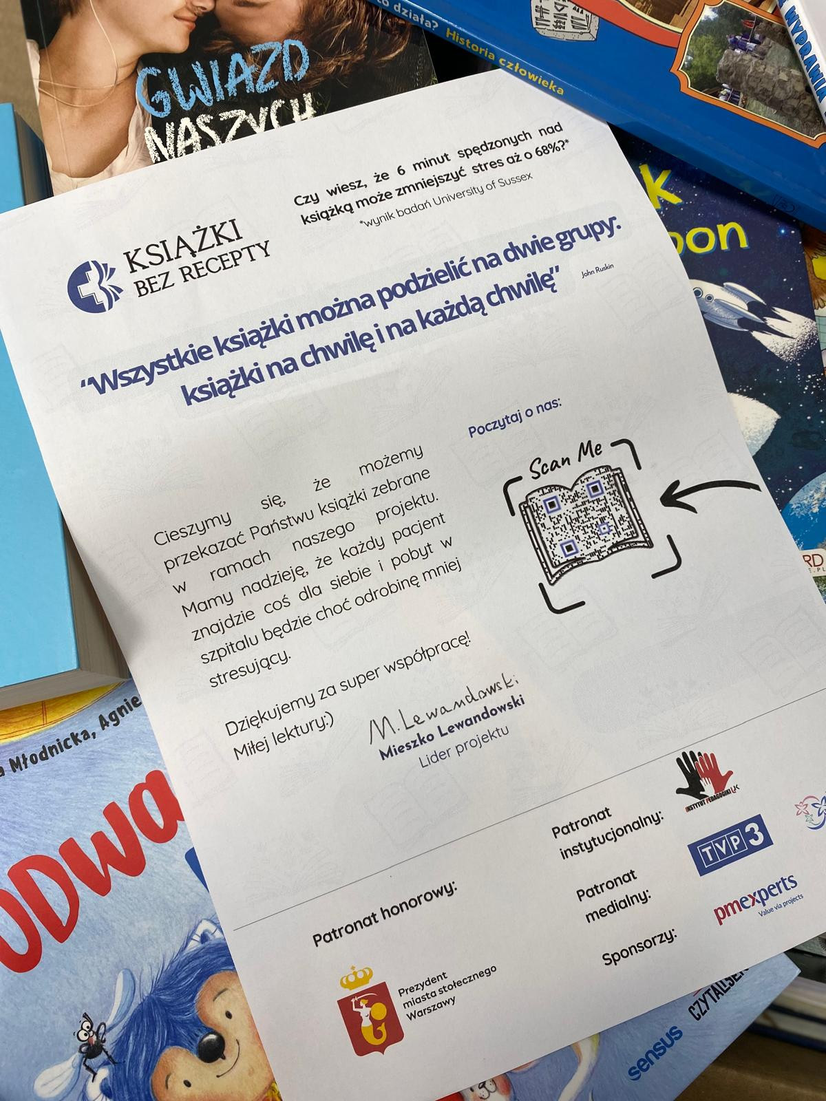 Książki bez recepty to piękna ogólnopolska inicjatywa, w ramach której młodzi ludzie zbierają książki i przekazują je do szpitali oraz placówek medycznych w całej Polsce.