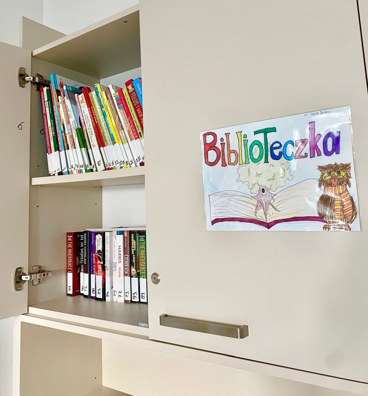Po drugie, powstała biblioteczka! Na razie skromna, ale z każdym dniem będzie się zapełniać niezwykłymi książkami. Idealna, żeby przenieść się do innego świata… bez wychodzenia z pokoju.