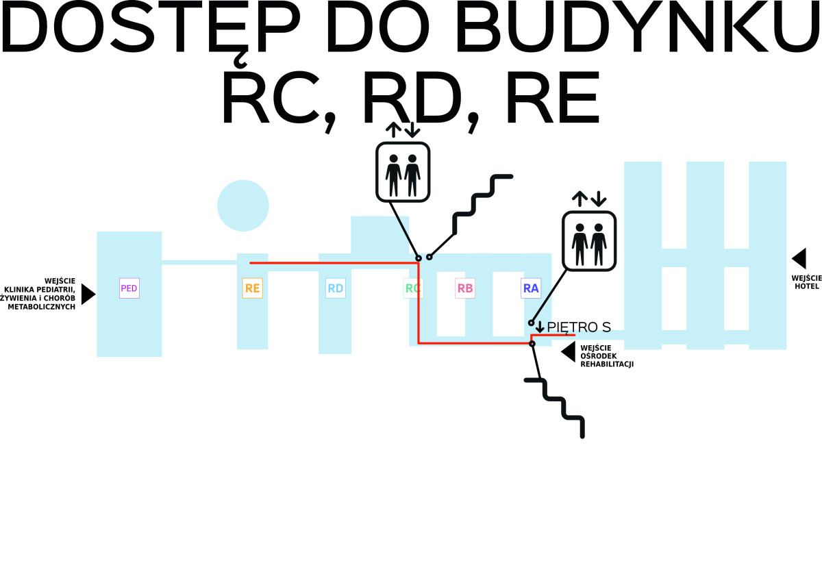 W okresie trwania prac remontowych przejście do budynków RC, RD oraz RE możliwe jest wyłącznie przez poziom S (piwnice) budynku RB.