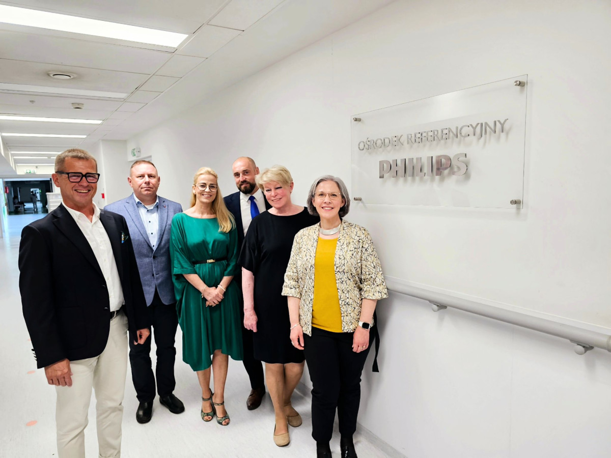 Podczas wizyty prof. Grażyna Brzezińska-Rajszys oprowadziła Veronique Tordoff oraz pozostałych gości po Pracowni Interwencji Sercowo-Naczyniowych, prezentując unikatowe możliwości ośrodka, wykorzystywane technologie oraz sposób organizacji pracy zespołu. Była to wyjątkowa okazja zaprezentowania codziennego wykorzystania nowoczesnych rozwiązań Philips w diagnostyce i leczeniu najmłodszych pacjentów z chorobami układu sercowo-naczynioweg.