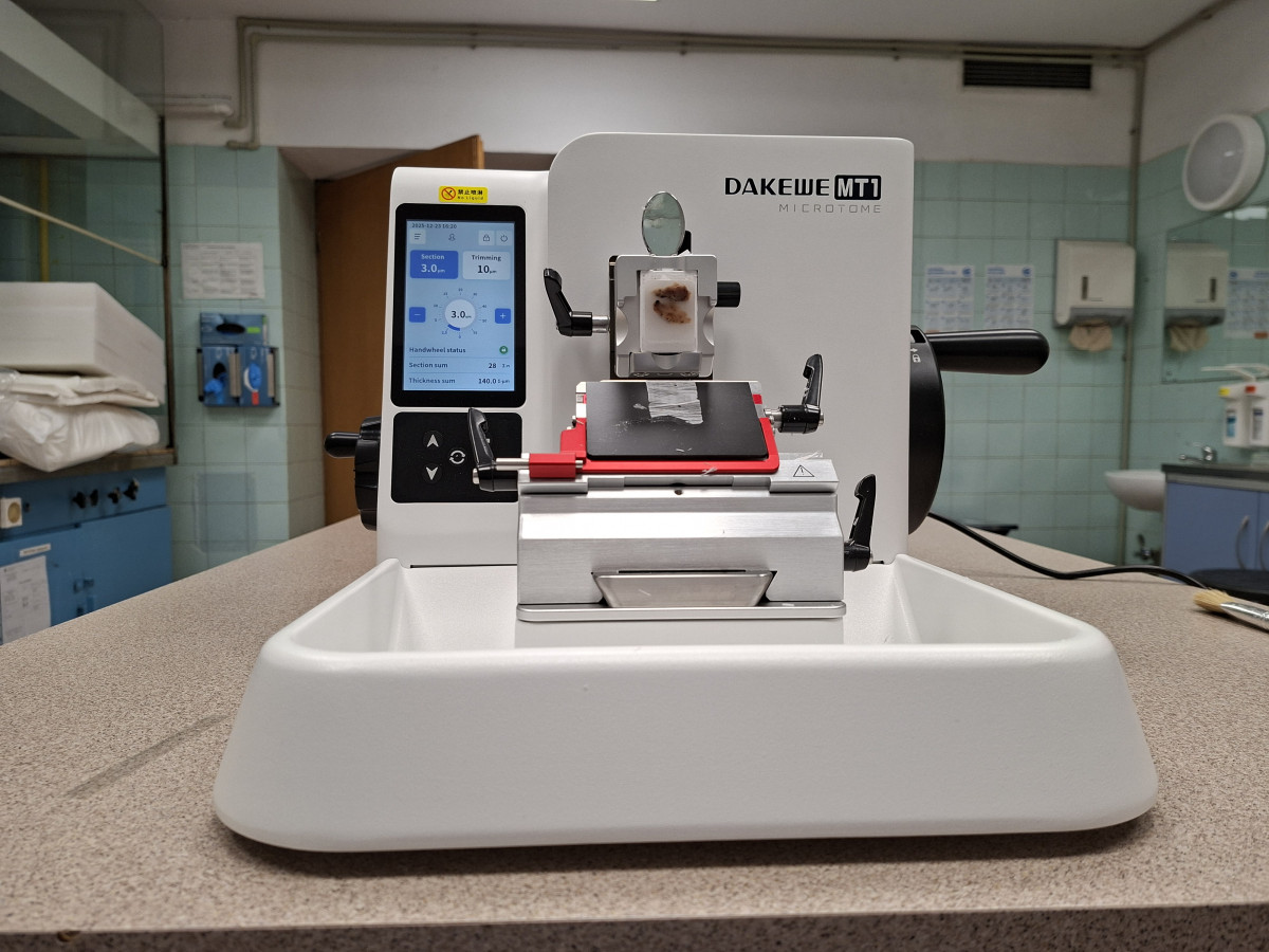Doposażenie Zakładu Patomorfologii IPCZD pozwoli na prowadzenie diagnostyki patomorfologicznej z wykorzystaniem najnowszych osiągnięć technologicznych. Mikrotom rotacyjny będzie wykorzystywany do uzyskiwania preparatów histologicznych z bloków parafinowych w patomorfologicznej diagnostyce nowotworów. Zakupiony sprzęt pozwoli na uzyskiwanie skrawków tkankowych o ściśle określonej grubości, co umożliwi wykonywanie wysokiej jakości preparatów histologicznych, oraz barwionych techniką immunohistochemii i hybrydyzacji wewnątrztkankowej. Wysoka jakość preparatów histologicznych, a zwłaszcza ściśle kontrolowana grubość skrawków, jest szczególnie istotna w procesie digitalizacji preparatów histologicznych i kluczowa dla tworzenia wysokiej rozdzielczości i ostrości skanów. Pozwala to na zdalną ocenę preparatów i między ośrodkowe konsultacje patomorfologów, co jest istotne w przypadku wydawanie rozpoznań patomorfologicznych w pediatrii.