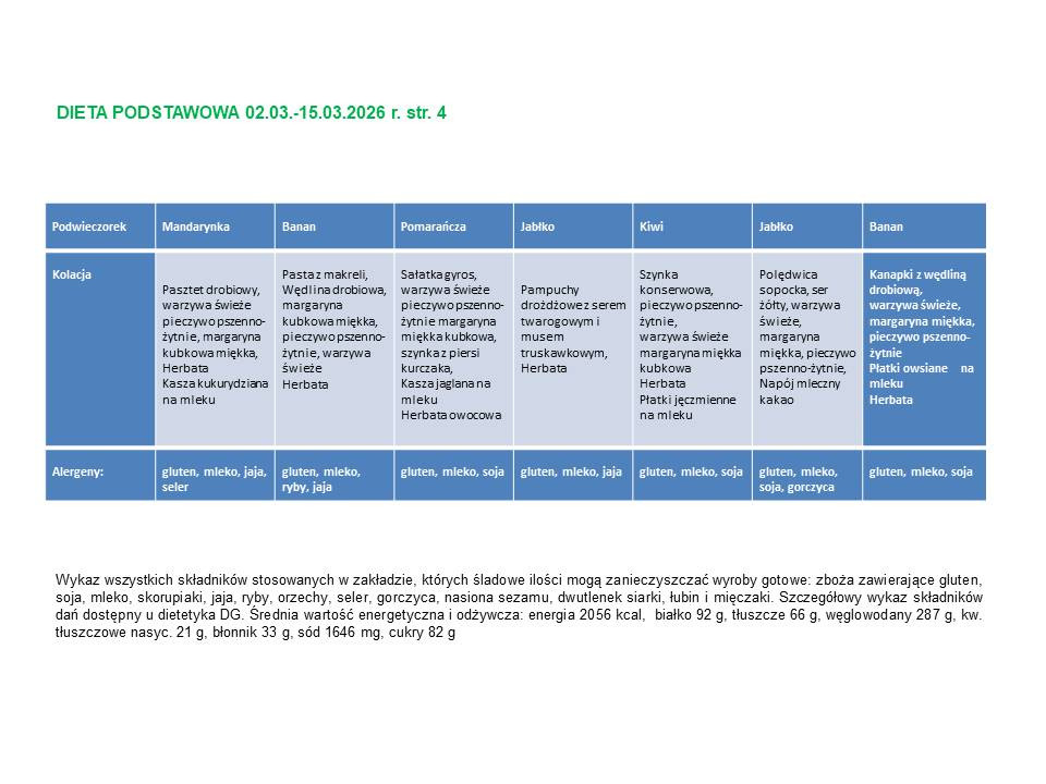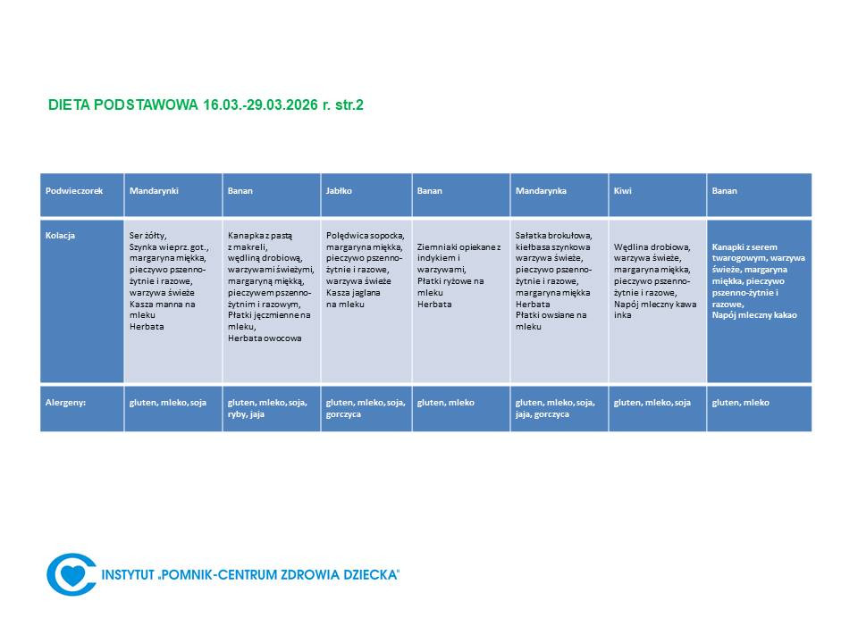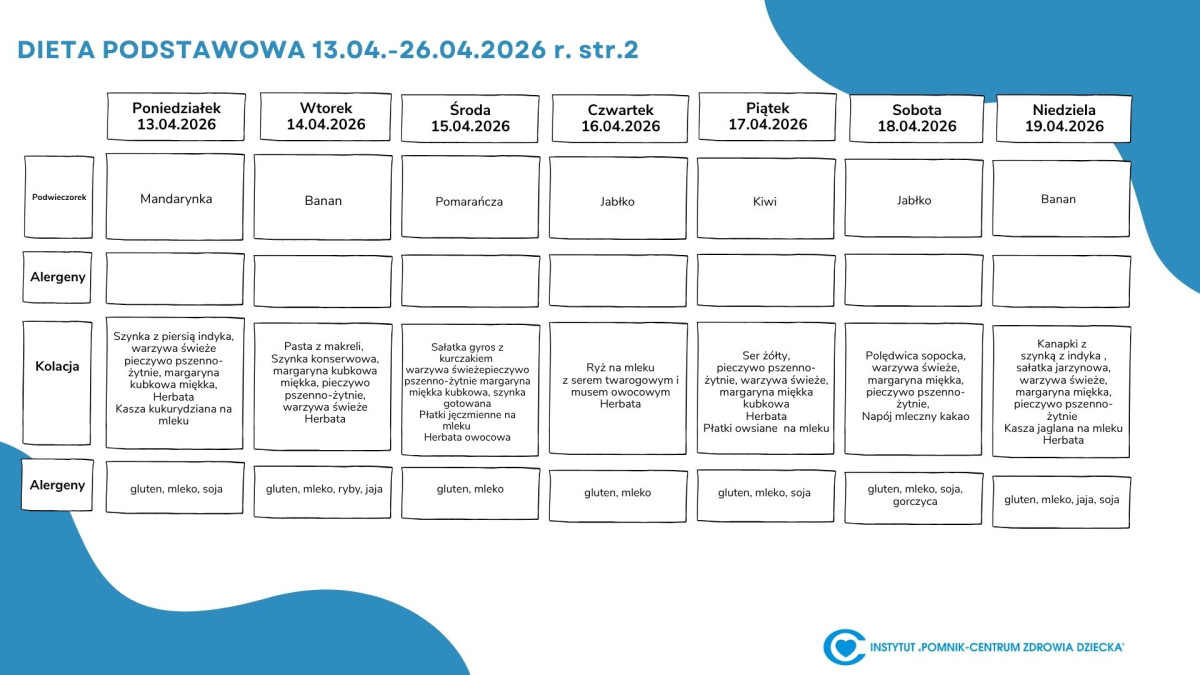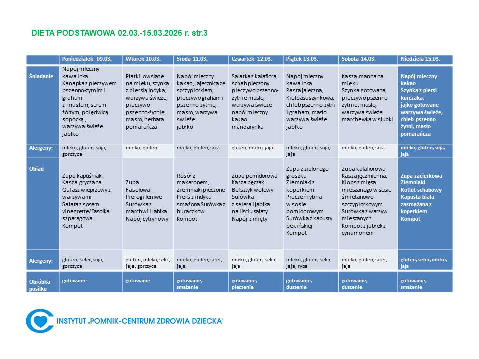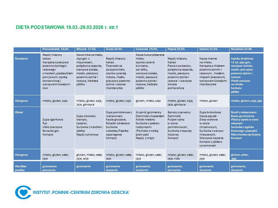 Lista diet obowiązująca w Instytucie „Pomnik – Centrum Zdrowia Dziecka”