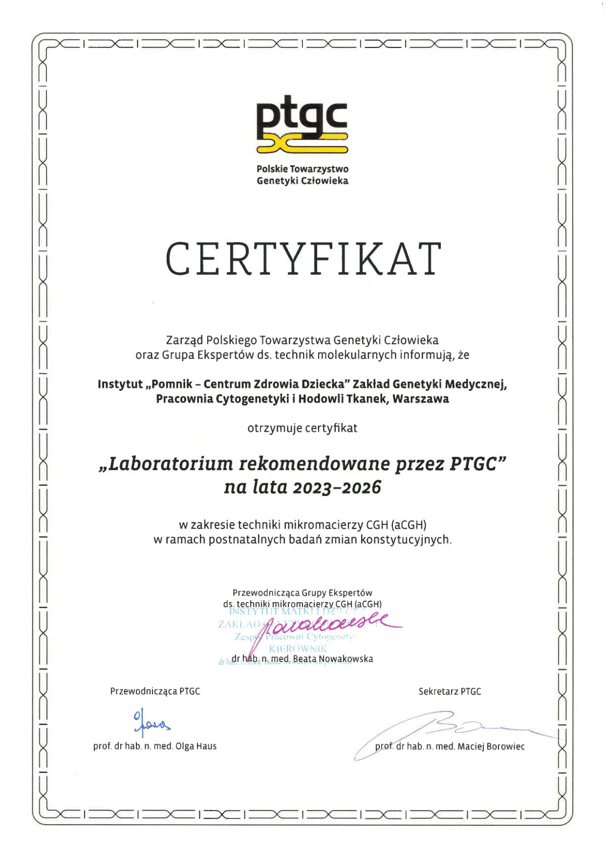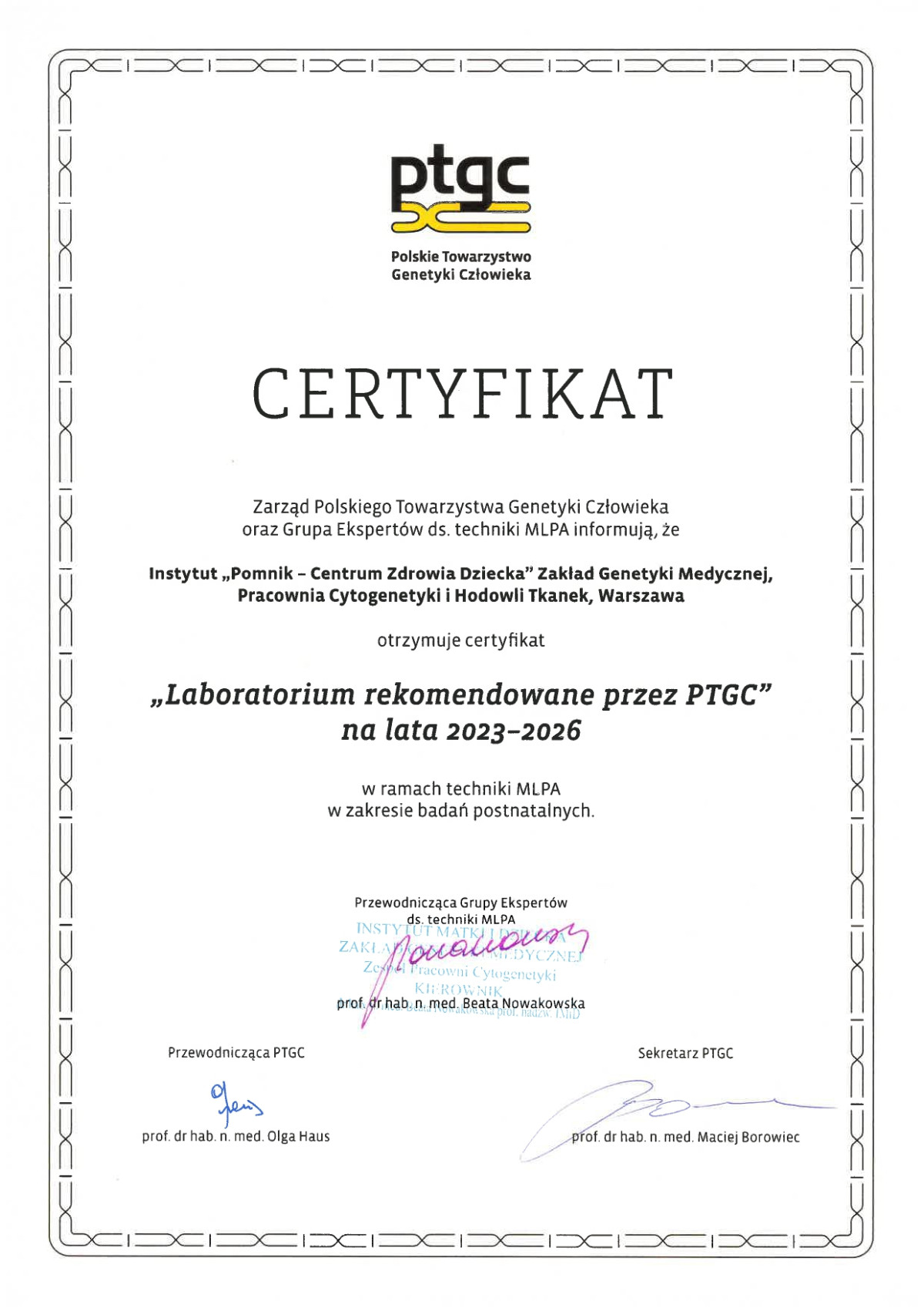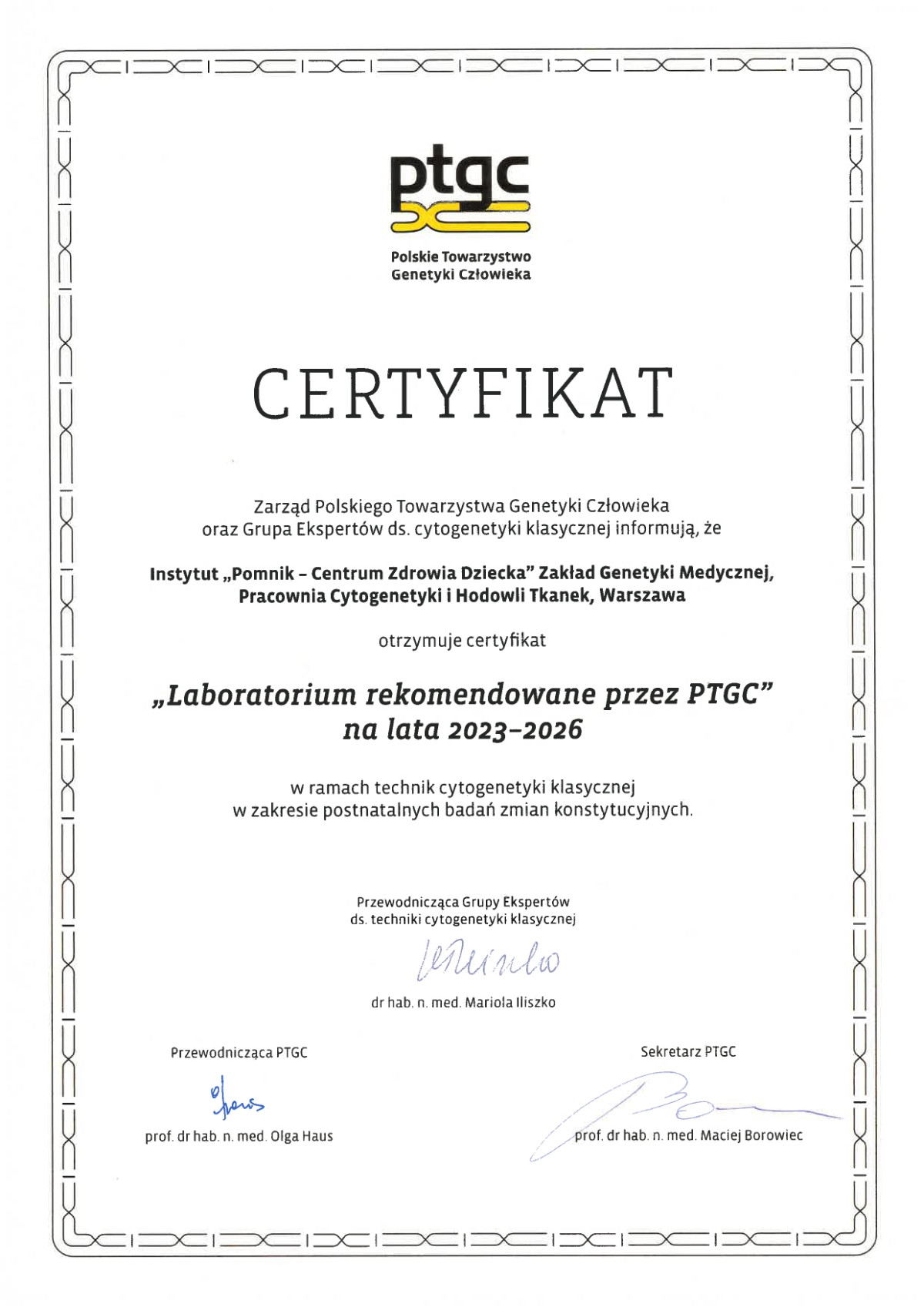 Pracownia jest ośrodkiem odbywania staży specjalizacyjnych w zakresie laboratoryjnej genetyki medycznej dla diagnostów laboratoryjnych, a także z genetyki klinicznej dla lekarzy.