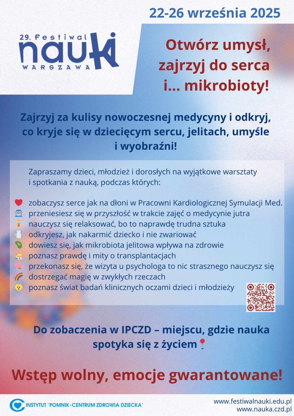 Instytut „Pomnik - Centrum Zdrowia Dziecka" oferuje w tym roku warsztaty stacjonarne oraz lekcje dla szkół w ramach 29. Festiwalu Nauki.