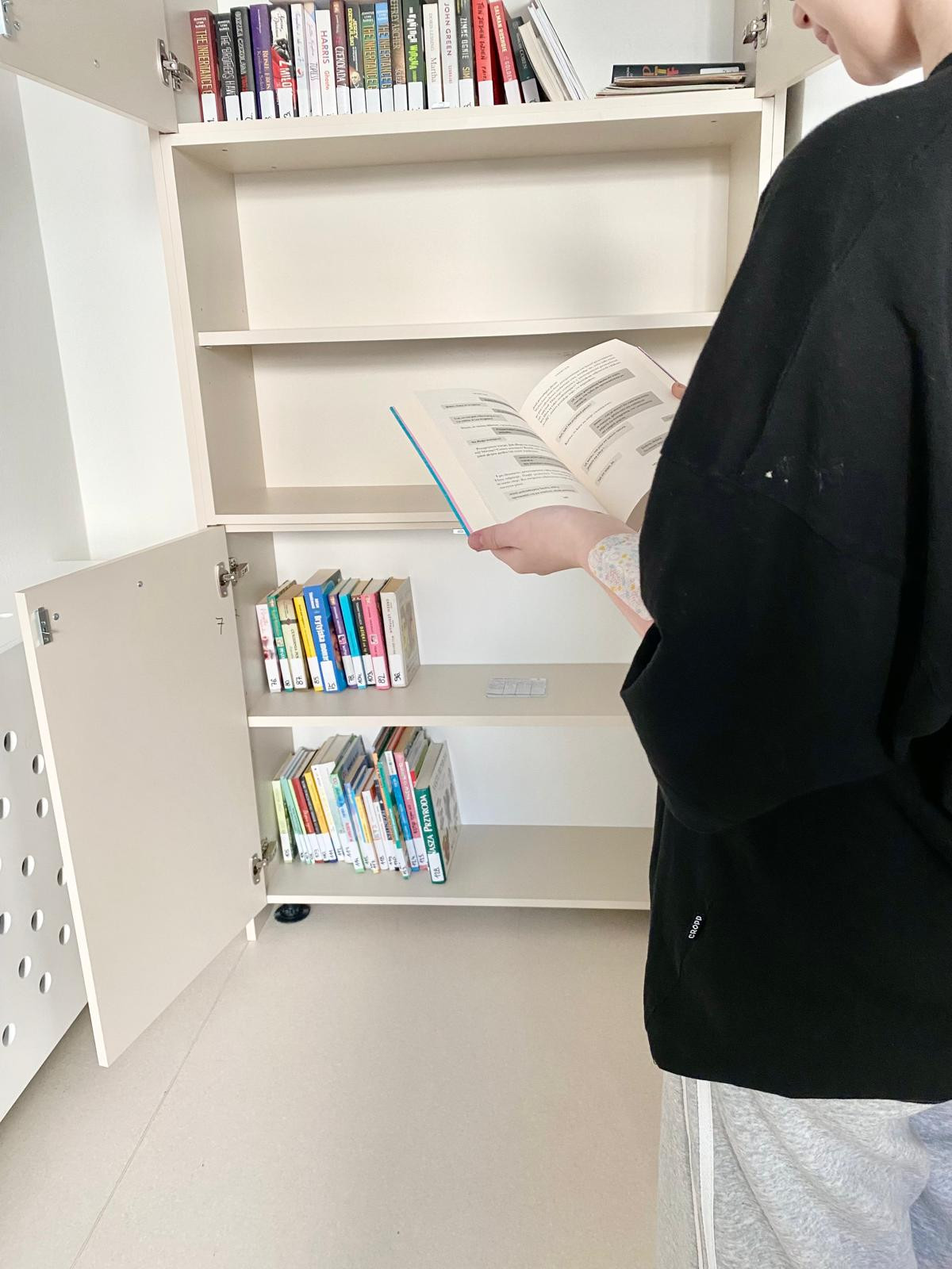 Po drugie, powstała biblioteczka! Na razie skromna, ale z każdym dniem będzie się zapełniać niezwykłymi książkami. Idealna, żeby przenieść się do innego świata… bez wychodzenia z pokoju.