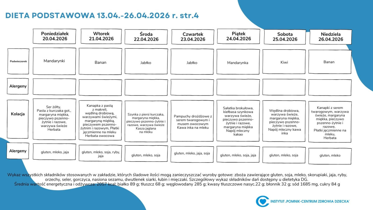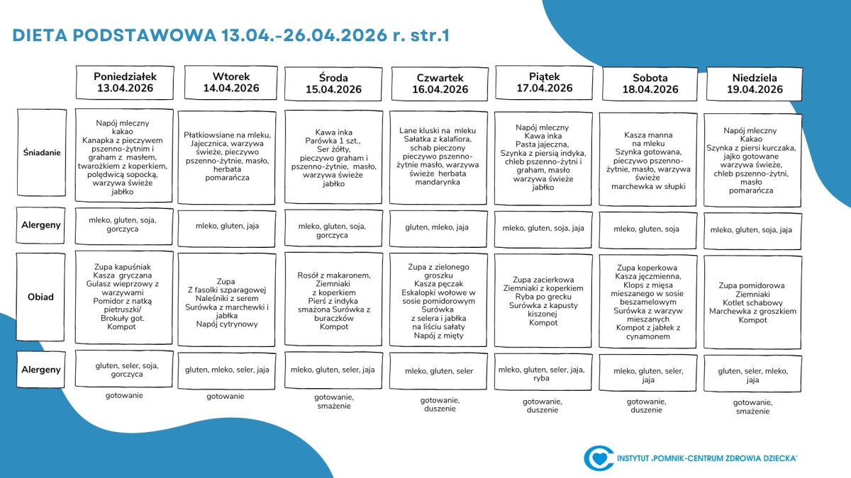 Lista diet obowiązująca w Instytucie „Pomnik – Centrum Zdrowia Dziecka”