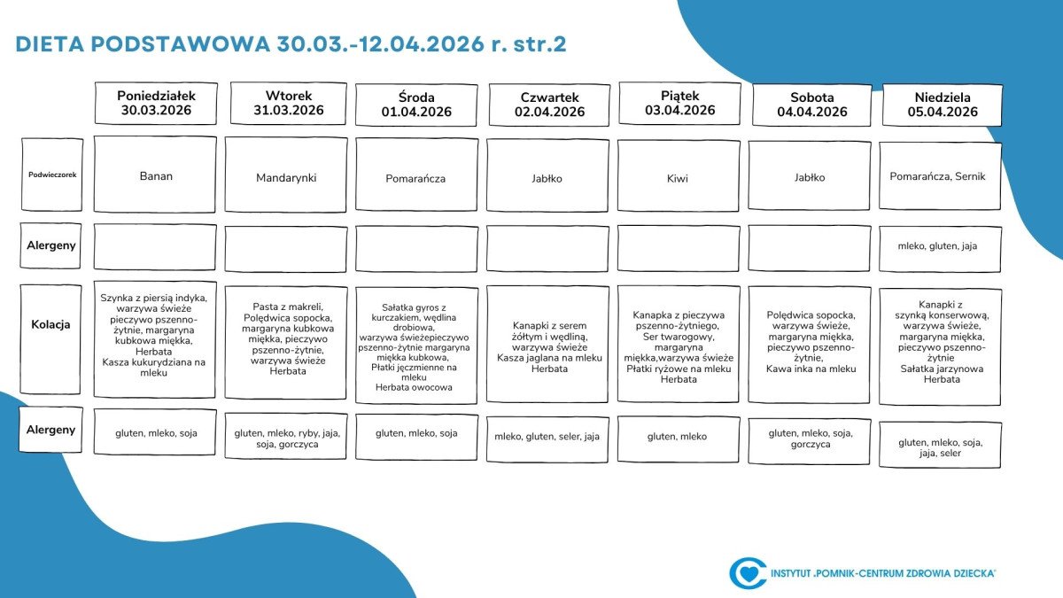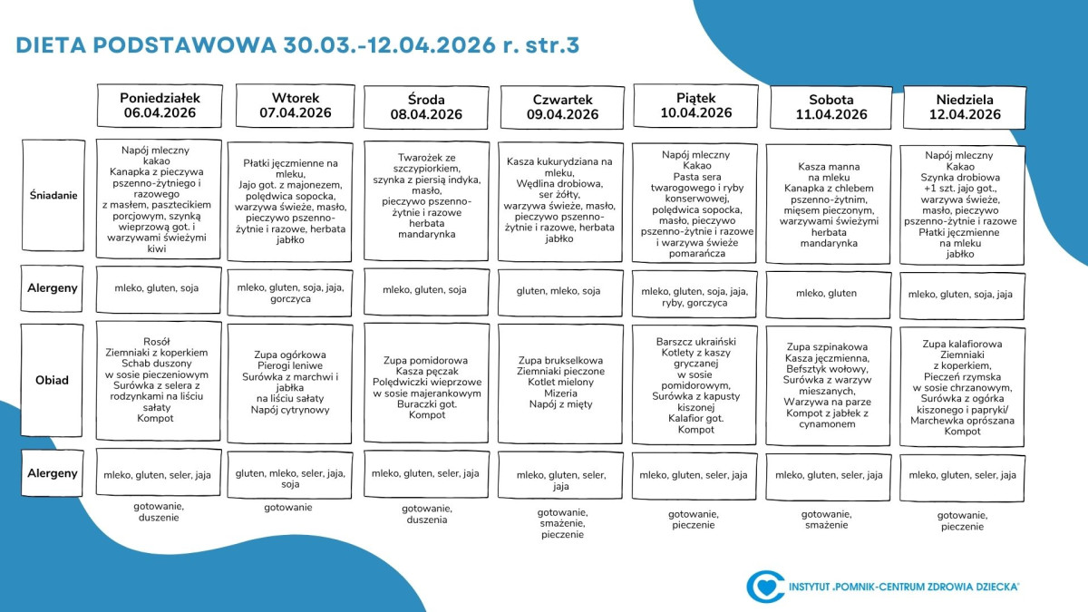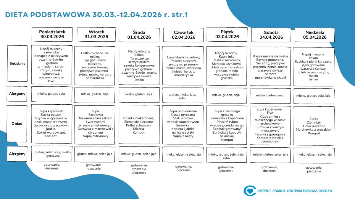 Lista diet obowiązująca w Instytucie „Pomnik – Centrum Zdrowia Dziecka”